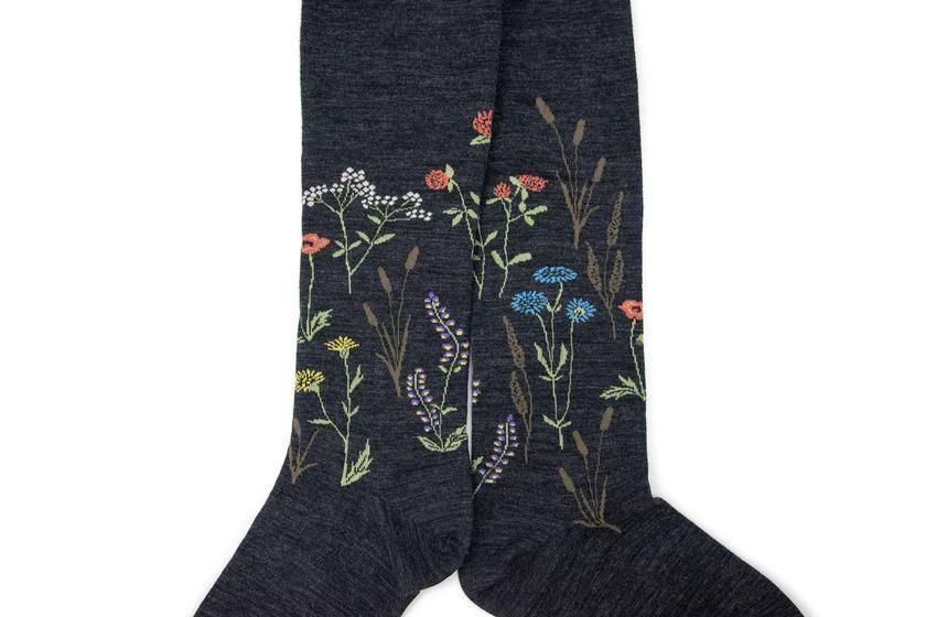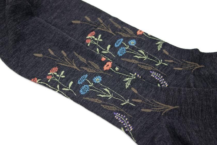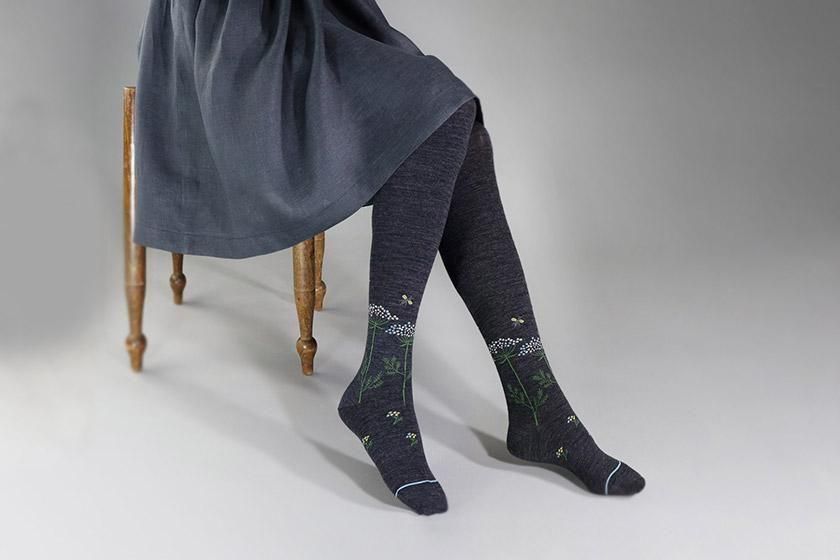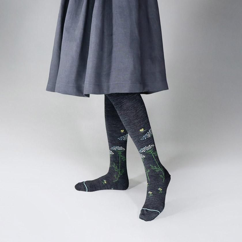 野原に自由に咲きほこる “ワイルドキャロット” の花を描いたタイツ